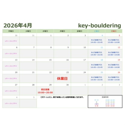 4月の営業案内&体験クラス開催日